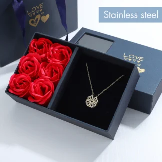 Rose Gift Box Four -leaf Grass Necklace Heart Necklace Cute Four Leaf Clover Necklace Dainty Gold Necklaces Gifts for Mother