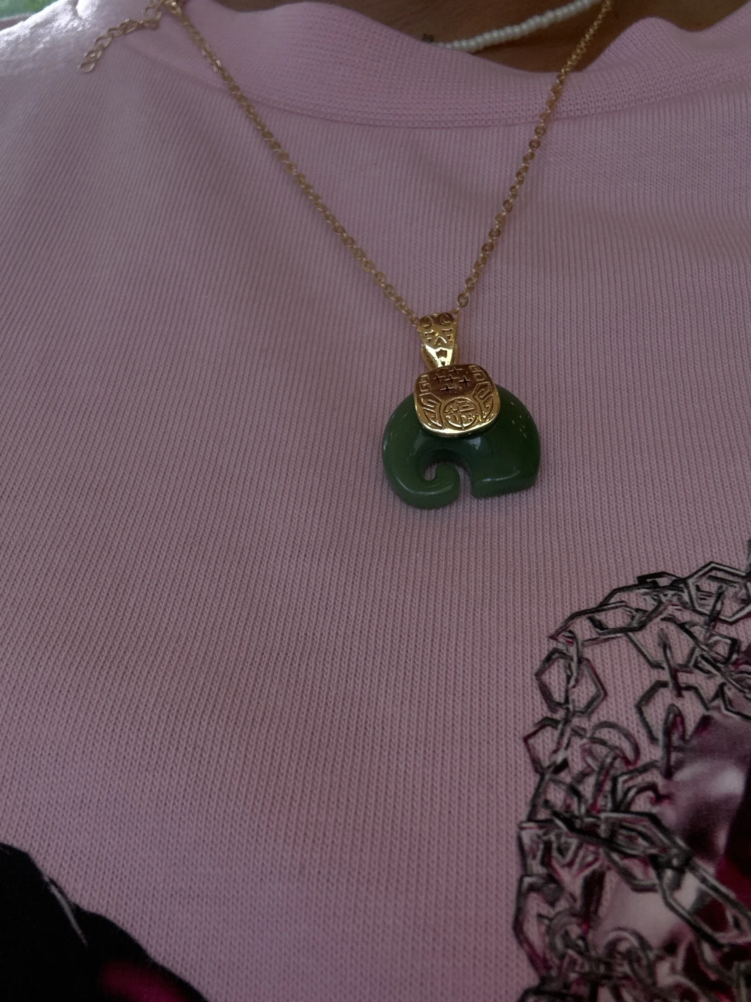 Cute Green & White Imitation Jade Elephant Peace